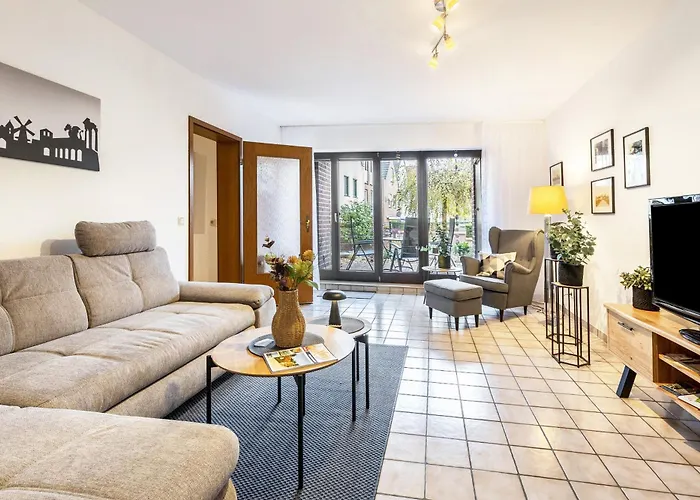 Die Apartments ist 250 Meter vom Klever Tor sowie 550 Meter von der Großmarkthalle gelegen. Das Naturschutzgebiet Reeser Schanz ist nur 4 km von diesem 70 m² großen Apartment entfernt. Außerdem liegt diese Unterkünfte in der Nähe vom SiegfriedMuseum Xanten.